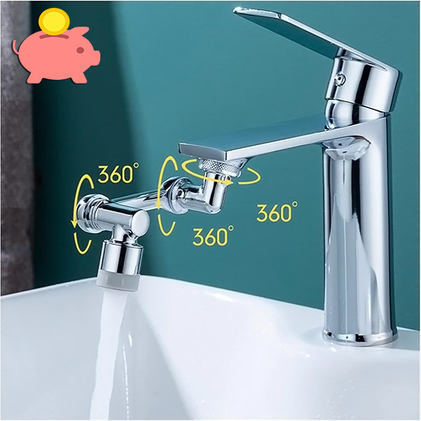 Alcanza fácilmente cada esquina del fregadero con una rotación completa de 1080°, perfecta para lavarte la cara, enjuagar platos o limpiar el fregadero.