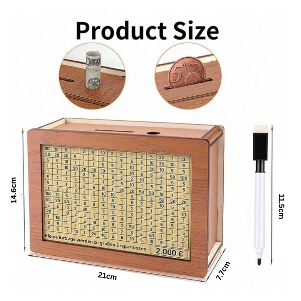 ¡Configura tu caja de ahorro COINSAVE en minutos! El rotulador y las hojas de ahorro incluidas facilitan la personalización. Su diseño elegante se integra perfectamente en tu hogar u oficina.