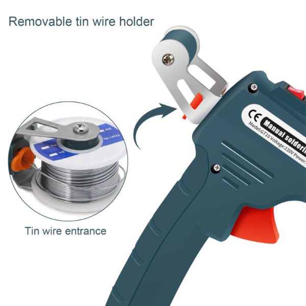 Se puede manejar con una sola mano, por lo que no tendrás que volver a apuntar con las manos al alambre de estaño y a la pistola de estaño, y no tendrás que preocuparte por quemarte las manos.