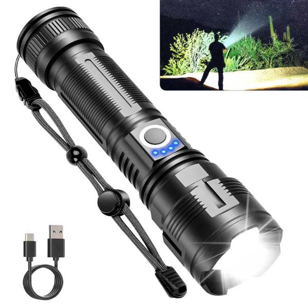 La batería recargable y resistente garantiza un uso prolongado, permitiendo que la linterna funcione durante horas.