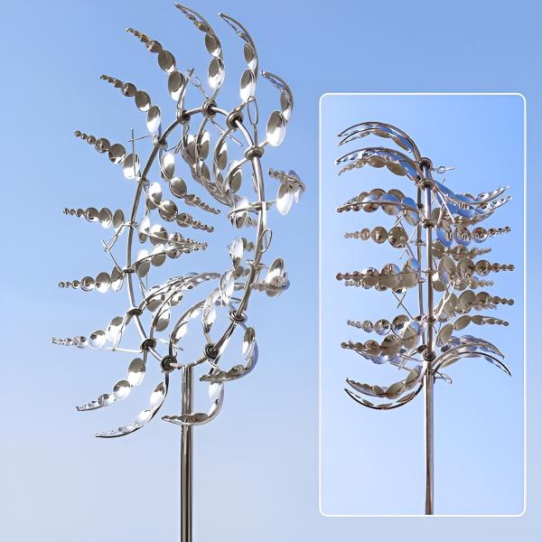 🌬️ Su diseño de doble hélice crea un espectáculo hipnotizante mientras resiste los días ventosos, perfecto para una decoración exterior sin esfuerzo.