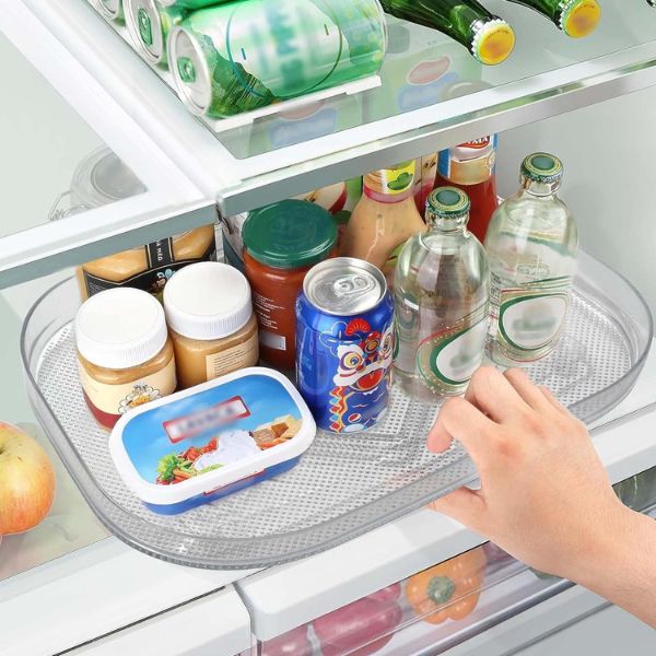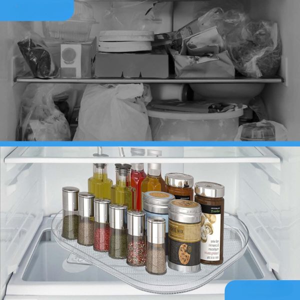 Mantén tu frigorífico ordenado con nuestra bandeja rectangular transparente para frigorífico. Este organizador de frigorífico giratorio 360° es perfecto para acceder fácilmente y aprovechar al máximo el espacio. Es fácil de limpiar, tiene ventosas antideslizantes y no requiere instalación.