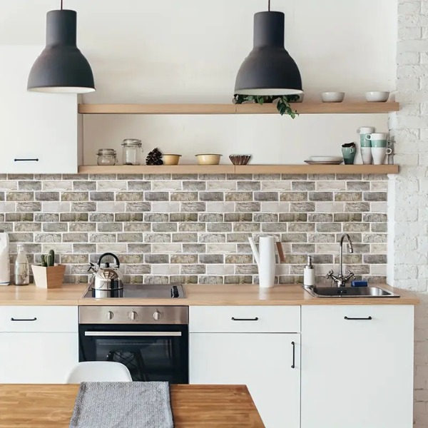 Características: diseño 3D de ladrillo, autoadhesivo