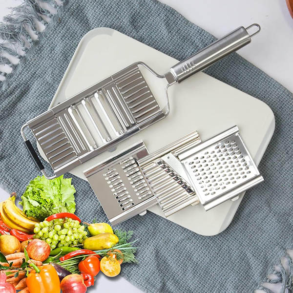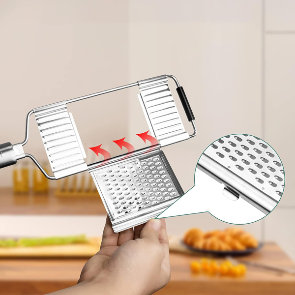 🧑🍳 Diseño multifuncional: Rebana, ralla y pica con una sola herramienta, perfecta para ensaladas, papas fritas y comidas rápidas.